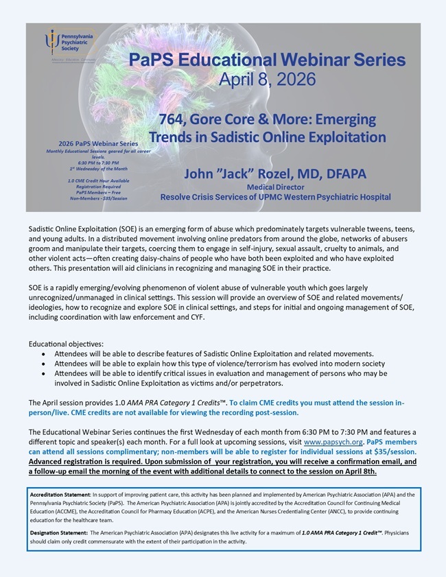 PaPS Members: Please log in here in order to see free member pricing for this event. Reminder that if you are PaPS Member - Please log in here in order to see free member pricing for this event. Please make you registration selections below and click "Register Now!" to submit. If you have any trouble, please email papsych@papsych.org.