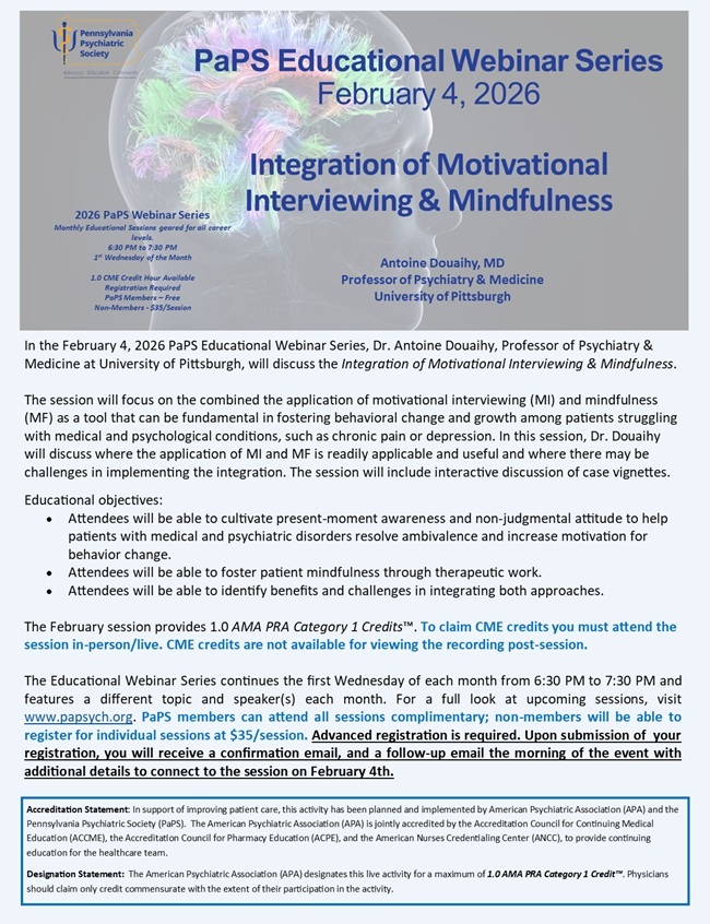 PaPS Members: Please log in here in order to see free member pricing for this event. Reminder that if you are PaPS Member - Please log in here in order to see free member pricing for this event. Please make you registration selections below and click "Register Now!" to submit. If you have any trouble, please email papsych@papsych.org.